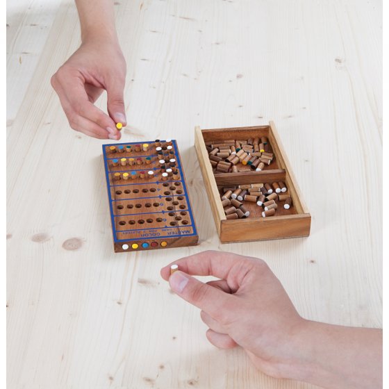 Deze 2 DELIGE SPELENSET laat u kennismaken met verslavende hersenkrakers. Zo is het om, de legendarische „Hanoi Tower“ in te verzetten. Deze zou tot stof vergaan zijn, mits hij niet nieuw gebouwd was. De boeddhistische wijsheid daarachter zal ons leren hoe moeilijk en vluchtig het leven is. Op het pad naar verlichting kunt u vertrouwen op vele leuke uurtjes! Probeer bij een spel van „master kleur“ het logische denken vermogen van uw partner. Hij moet de kleur en de volgorde van uw verborgen tokens uit vinden... Zeer decoratief ontwerp van hout, wordt geleverd compleet met toebehoren, doos (afm. ca. 24 x 9 x 6 cm) en LP (12 x 20 x 4 cm). Twee intelligente, boeiende puzzel games die u kunt spelen alleen of met tweeën, om uw “grijze cellen” te trainen!