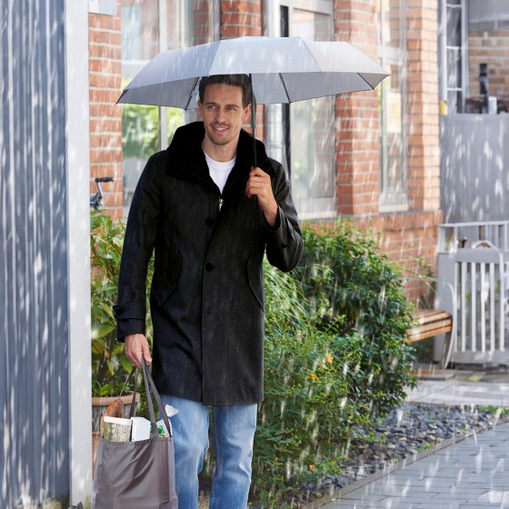 De 2-IN-1 PARAPLU MET BOODSCHAPPENTAS geeft een geheel nieuwe betekenis aan de term 'gemak', omdat er een boodschappentas is 'verborgen' in de hoes! Open de ritssluiting op de hoes en klap de binnenkant open: u hebt nu een shopper van 40 x 40 cm met 64 cm lange handvatten die comfortabel over uw schouder gedragen kunnen worden. Vervolgens kunt u de paraplu weer in de tas stoppen (hiervoor zit een speciaal vak onder de bodem van de tas). Afmetingen paraplu: 28 x 6 x 6 cm (opgevouwen) of 100 cm (Ø uitgevouwen). Als u bij onvoorspelbaar weer gaat winkelen, zorg er dan voor dat u deze paraplu altijd bij u hebt, zodat u nooit nat wordt!