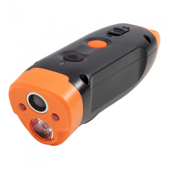 De gedachte dat een loslopende hond op u afspringt – of dat nu uit agressie of speelsheid is – schrikt u af? Bescherm uzelf! De ULTRASOON HONDENVERJAGER produceert in geval van nood een 8 seconden durend, voor mensen onhoorbaar schel geluid dat door elke hond als onaangenaam wordt ervaren. Daarnaast kan het apparaat snelle lichtflitsen afgeven of continu licht uitstralen. De ultrasoon- en lichtfuncties kunnen afzonderlijk worden ingeschakeld. Afmetingen (L x B x H): ca. 13 x 4 x 7 cm. Werkt op een oplaadbare accu, opladen via USB-C (laadkabel inbegrepen, stekkeradapter apart verkrijgbaar). Wees voorbereid op aanvallen van dieren!
