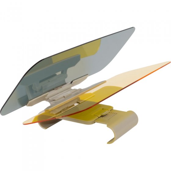Verblindende koplampen van tegenliggers, lichtweerspiegelingen op het wegdek, een laagstaande zon: dit zijn gevaarlijke licht- en weersomstandigheden tijdens het autorijden, zeker in de winterperiode en als het donker is. Dit ANTI-VERBLINDINGSSCHERM VOOR DAG EN NACHT bestaat uit twee plexiglasplaten (ca. 16 x 32 x 6,5 cm) en is gebaseerd op de beproefde technologie die in de luchtvaart wordt toegepast. De speciale tinten – grijs voor overdag en geel voor ’s nachts – beperken hinderlijke schittering en verbeteren uw diepteperceptie! Met de stabiele klip kan het scherm eenvoudig aan de zonneklep worden bevestigd (u hebt geen gereedschap nodig) en worden open-/dichtgeklapt – u ziet beter, voelt zich veiliger en rijdt ontspannen!