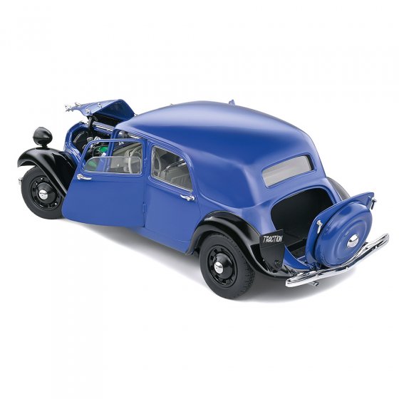 Zo nieuw, zo gedurfd, zo anders dan alles wat we eerder gezien hebben... de pers was lovend over de presentatie van de Traction (voorwielaandrijving) in 1934. En terecht, want het was een technische revolutie. André Citroën durfde het aan om de achterwielaandrijving los te laten en de hele motor en versnellingsbak op de voorwielen te laten rusten. Deze gedetailleerde replica van de beruchte 'gangsterlimousine' van gegoten zink op een schaal van 1:18 van de CITROЁN TRACTION heeft een bestuurbare vooras, en voordeuren, een kofferbak en een motorkap die open kunnen. Lengte: ca. 26 cm. Een tweekleurig juweeltje, niet alleen perfect voor verzamelaars en liefhebbers van legendarische auto's.