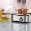 Liefhebbers van gekookte eieren besparen met de COMPACTE EIERKOKER VOOR 3 EIEREN veel energie ten opzichte van het koken in een pan. En dat is nog niet alles: met het apparaat kunt u ook de exacte consistentie bepalen! Dankzij een gemakkelijk af te lezen watervulschaal op de bijgeleverde maatbeker met een eierprikker kunt u precies bepalen hoe hard de eieren gekookt zullen worden (hard, middelhard of zacht). Met de uitneembare kookinzet kunt u de gekookte eieren afkoelen zonder risico dat u uw vingers brandt. Afmetingen (b x h x d): ca. 22 x 13 x 9 cm. Werking via 230 V/210 W. Materiaal behuizing: kunststof, met coating van roestvrij staal. Het ideale keukenapparaat voor energiebewuste singles en stellen!