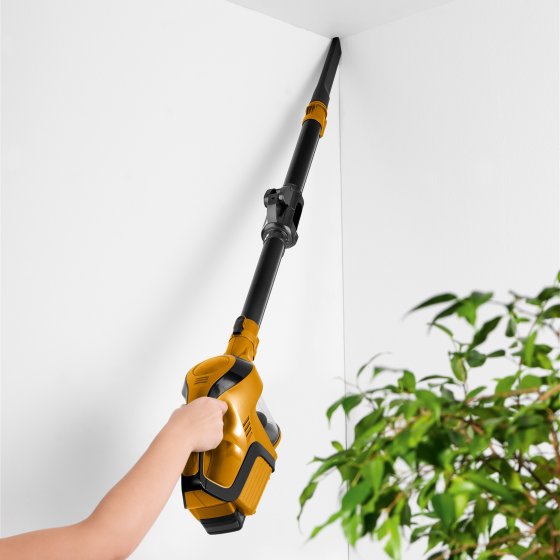 Spinnenwebben aan het plafond, stof op de kast, kruimels op de bank of op de vloer: voor alle deze situaties volstaat dit ene apparaat: de CYCLOON-MULTI-KRUIMELDIEF! Het draadloze apparaat zuivert dankzij verschillende sproeierkoppen alle oppervlakken. Een verlengbuis (81 cm) met scharnier maakt hem tot stofzuiger, waarmee u werkelijk elk hoekje kunt bereiken. Inclusief elektrische turbo-zuigmond voor meer efficiëntie. Werkt op accu (opladen via 230-V-oplaadstation). Afmetingen zonder scharnierbuis (b x l x h): ca. 13 x 38 x 19 cm. Gun uzelf een energieke, flexibele zuiger voor alle doeleinden!