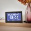 U wilt in één oogopslag alles zien: tijd, dag van de week en kalenderdatum? Alstublieft: de DIGITALE KLOK MET DAGAANDUIDING geeft in lichte cijfers en letters op een niet-spiegelend backlight-scherm de tijdgegevens weer, net als op een tablet. Er zijn 3 weergaveformaten om uit te kiezen. Daaronder één compleet zonder cijfers die de tijd van de dag compleet in woorden aangeeft (in een van 7 instelbare talen, alle woorden zijn uitgeschreven). Werkt op 230 V met 5V-netadapter (inclusief). Afmetingen (BxHxD): ca. 24x16x2 cm. Duidelijker laat de tijd zich niet weergeven!