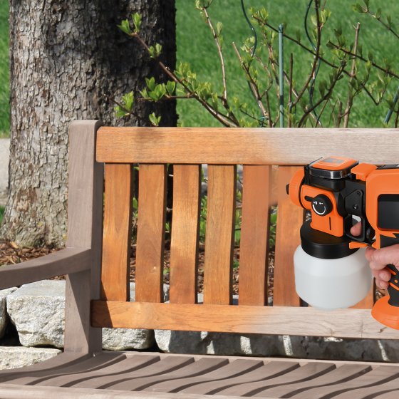 Een nieuw likje verf: u kunt dit helemaal zelf en net zo goed als een professional, met het ELEKTRISCHE VERFSPUITPISTOOL van Profi-Partner. Of het nu gaat om muren, plafonds of tuinmeubelen: spuiten is veel effectiever en gelijkmatiger, voor een schoon resultaat! Vul het extra grote XL-verfreservoir met verf, lak of lazuur, selecteer een van de twee spuitmondgroottes en stel de juiste straalsoort in (er zijn 3 varianten beschikbaar). Druk op de knop om te beginnen: met een doorstroomsnelheid tot 1.100 ml/min. spuit de vloeistof uit het 550W-pistool en kleurt oppervlakken en objecten mooi gelijkmatig, zonder penseelstreken. Werkt op 230 V. Afmetingen (l x b x h): ca. 27 x 15 x 25 cm. Pijnlijke spieren na het schilderen met een kwast zijn verleden tijd. Dit is uw ideale partner voor het verven van grote oppervlakken, veeleisend precisiewerk en een gelijkmatige verdeling van de verf – zelfs in kleine hoeken.