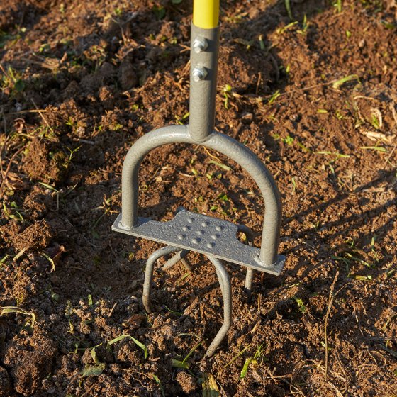Gras ploegen of grond losmaken of beluchten is meestal zwaar werk. Met deze ENERGIEBESPARENDE BODEMFREES is dat juist zeer eenvoudig. Dankzij het slimme ontwerp met een brede handgreep en de scherpe stalen klauwen, die eenvoudig in de grond kunnen worden 'geschroefd', gaat het bewerken van de grond met de bodemfrees praktisch moeiteloos. Zelfs moeilijk bereikbare plaatsen onder bijvoorbeeld struiken zijn gemakkelijk te bereiken met het apparaat, zonder te bukken. Als de grond erg droog is, stapt u gewoon op de voetplaat en gebruikt u uw lichaamsgewicht om mee te helpen. Totale lengte: ca. 94 cm. Levering incl. montagegereedschap. Zo wordt tuinieren nog leuker!