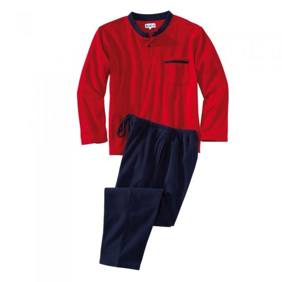 Hij is zo comfortabel om te dragen dat u hem niet meer uit wil doen: De pluizige, zachte FLEECE HUISPAK is 100% kriebelvrijt, en slaat dankzij de ontelbare kleine luchtcellen in het weefsel, de lichaamswarmte op. Op deze manier, biedt het pak een uitstekende isolatie tegen de kou en laat uw huid ademen. In rood en blauw met een chic contrast verwerking werkt deze heerlijk comfortabel outfit uitzonderlijk stijlvol. De twee-knoops sluiting in het bovendeel maakt het aan- en uit trekken super comfortabel. Polar fleece 100% polyester, wasbaar in de machine, bovendeel met borstzak, broek met elastische tailleband en koord, twee zakken. Ook verkrijgbaar in maat 3XL. De prognose van onze textiel deskundige: Hij heeft de ingrediënten voor