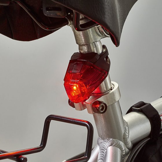 Uw fiets op het veiligheidsniveau van de nieuwste automodellen: deze INNOVATIEVE FIETSVERLICHTING is toonaangevend voor het komende seizoen! Dankzij het zuinige daglicht bent u zichtbaar, ongeacht het weer. De extra lichte CREE led-koplamp (180 lm) wordt in een donkere omgeving automatisch ingeschakeld en houdt rekening met andere weggebruikers door middel van een intuïtieve dimlichtfunctie. Met automatische aan-/uitschakelfunctie bij aanvang van de rit en bij stilstand. Inclusief achterlicht en bevestigingsmateriaal. Afmetingen frontlicht (l x b x h): ca. 8 x 5 x 7 cm. Oplaadbaar via USB-kabel (inclusief). Een bijzondere fietslamp die automatisch meedenkt!