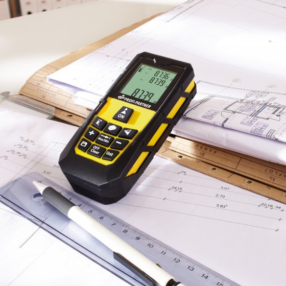 Meten, rekenen, opslaan, weergeven: de LASERAFSTANDSMETER doet zijn werk eenvoudig en nauwkeurig, altijd en overal. Met één druk op de knop (met akoestisch bevestigingssignaal) meet het afstanden van max. 40 meter – tot op de millimeter nauwkeurig, zowel binnen als buiten. Dankzij het geheugen voor maximaal 20 waarden hoeft u daarbij ook geen aantekeningen meer te maken. Indien nodig worden ook opeenvolgende metingen opgeteld of afgetrokken en oppervlakken of inhouden berekend. Met behulp van de Pythagoras-functie bepaalt u zelfs niet goed te bereiken zijden! Werkt op 2 AAA-batterijen (niet meegeleverd). Afmetingen (b x h x d): ca. 5 x 12 x 3 cm. Meet nauwkeurig en met één hand!