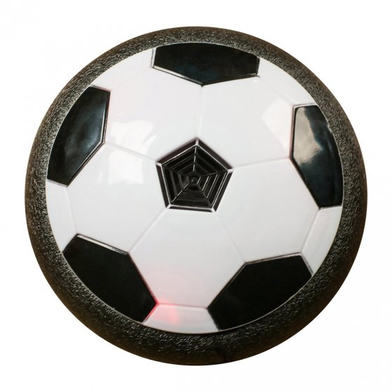 Met de LUCHTGLIJDVOETBAL wordt uw eigen huis een stadion, zonder enig gevaar voor uw televisietoestel of ramen: de discusvormige bal is een luchtkussen met 360°-bekleding. Ventilatoren binnenin creëren een luchtkussen waarop de bal zweeft en over vrijwel elke ondergrond glijdt – zelfs over vloerbedekking. Even zacht aanstoten met de voet is voldoende! Led-lichteffecten zorgen voor nog meer spelpret! Werkt op 4 AA-batterijen (apart verkrijgbaar). diameter: ca. 19 cm. Hoogte: ca. 8 cm. Klaar voor de aftrap?