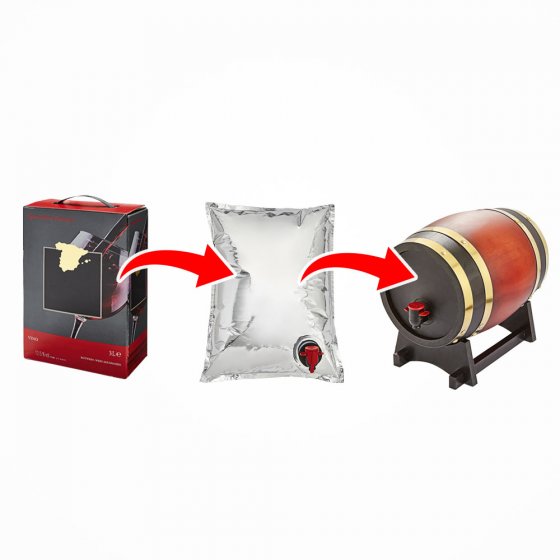 Wijnzakken in dozen zijn populair. Ook als u slechts één glaasje wilt drinken, blijft het heerlijke vocht vrij van oxydering en daardoor heerlijk van smaak – tot aan de volgende borrel. Deze slechts mooi is deze manier van bewaren ziet er helaas niet zo heel mooi uit. Dit MINI-WIJNVAT VAN PIJNBOOMHOUT is een decoratieve uitkomst! Schenk de wijn uit de wijnzak uit de doos over in het leuke vat, trek het tapkraantje door het gat in de deksel en sluiten het vat aan – klaar voor gebruik. Dankzij het metalen beslag staat het vast mooi op iedere tafel. Geschikt voor 3 l-wijncontainer. Afm.: Ø ca. 15,5 cm, hxd ca. 22x23,5 cm. Een veilige manier om te genieten van de heerlijke smaak van het druivensap!