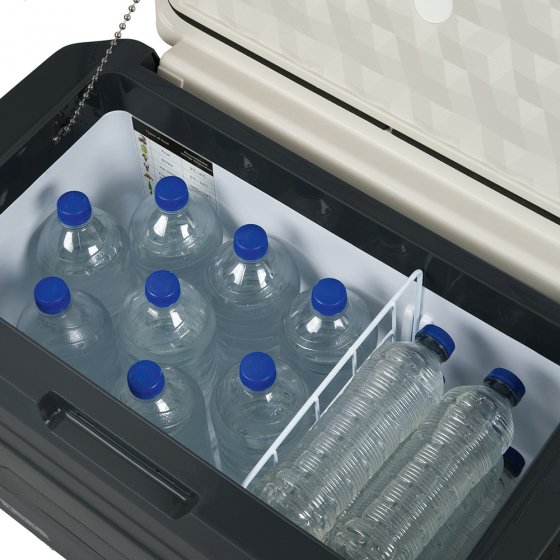Koelen of vriezen - de MOBIELE KOELKAST EN VRIEZER combineert beide in een compact formaat. De efficiënte compressor biedt een permanente koelcapaciteit van ongeveer 10 °C tot -20 °C. De temperatuur kan eenvoudig worden geregeld via de display. Met praktische extra’s zoals automatische binnenverlichting, een usb-poort en bekerhouders. Ruime inhoud van 40 liter, bediening via de meegeleverde 230-volt- en 12/24-voltadapters. Afmetingen (l x b x h): ca. 36,4 x 63 x 47 cm. Ideaal voor op het terras, in de auto & boot en voor op de camping.