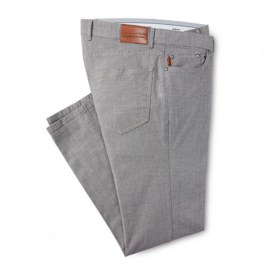 De MODIEUZE KATOENEN BROEK is perfect te combineren en geeft elke look de juiste opvallende look. Reden daarvoor is het zeer fijngeweven microdessin in de stof: dat zorgt voor een trendy zout & peper-look, waarmee de broek zich onderscheidt en er heel interessant uitziet. De mooie kwaliteit van 97% katoen en 3% Elastan voelt zacht aan en zorgt voor een goede pasvorm. Door het stretch-accent in de stof en de comfortband heeft de broek een hoog draagcomfort. Uitgevoerd in sportief five-pocketsmodel en met een praktische veiligheidszak rechts achter. De neutrale kleur past overal bij en is geschikt voor vele gelegenheden.