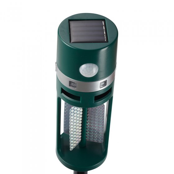Vreemde dieren in de tuin – dat betekent vuil en uitwerpselen, of het nu om honden, poezen of wilde dieren gaat. Deze MULTIFUNCTIONELE DIERENVERJAGER houdt ze ver van uw perceel! Viervoeters worden door ultrasone geluidsgolven tussen 22 en 65 kHz en knipperende leds afgeschrikt, zodra de geïntegreerde bewegingssensor de ongevraagde bezoeker spot. Tegen vogels helpen 4 roterende reflectoren, die al bij zeer lichte wind zorgen voor afschrikkende lichteffecten. Werkt via solar-paneel met accu. Afmetingen: ø ca. 7 cm, lengte inclusief grondpen (25 cm) ca. 59 cm. Verklaar uw tuin tot no-go-area voor dieren – uw gazon heeft er profijt van!