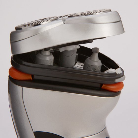 Het OPLAADBARE SCHEERAPPARAAT MET 3 SCHEERKOPPEN EN LCD zal u inspireren! Zijn scheermessen zijn dankzij de titaniumcoating corrosiebestendig en anti-allergeen - voor een fantastisch comfort, scheerbeurt na scheerbeurt. Verend gelagerde, dubbele roterende scheermessen volgen de gezichtscontouren tot op de millimeter. Voor zeer precies scheren, zelfs op moeilijke plaatsen. Met oplaadbare batterij voor maximaal 40 minuten snoerloos gebruik. Lcd-indicator geeft de batterijstatus weer en geeft aan wanneer u de opzetstukken moet reinigen. Reinigen onder stromend water. Uitschuifbare trimmer voor lange haren. Behuizing van slagvast ABS met "soft touch". Lengte: 13 cm. Wordt geleverd met lader en opbergtas.