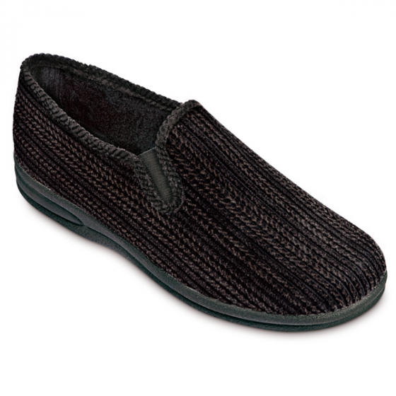 U zult zich er de hele dag op verheugen, na werktijd deze super comfortabele pantoffel met wollige voering aan te kunnen trekken! Z’n lekker zacht „binnenste“ verwarmt koude voeten in een mum van tijd en is het toppunt van behaaglijkheid. Dankzij de voetgerechte vorm hebben de tenen veel plaats in deze lichte, soepele oergezellige pantoffel. Door 2 elastische inzetstukjes op de wreef past hij zich ideaal aan. Niets drukt of knelt, uw voeten kunnen eindelijk ontspannen. De soepele antislip sleezool geeft een aangenaam loopgevoel. Het fluweelzachte, duidelijk hoogwaardige structuur bovenmateriaal in zwart/bruin geeft hem een edele optiek. Door de zorgvuldig afgewerkte vormstabiele rand is hij stevig en gaat lang mee. Bovenmateriaal 100% katoen, voering en binnenzool 62% polyester, 38% polyacryl. Een wintergenot, dat u voeten goed zal doen!