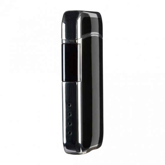 Moeizaam aan het wieltje draaien met de duim, en bij het kleinste zuchtje wind is de vlam alweer uit ... Met deze chique PLASMA-AANSTEKER 'X-ARC-TOUCH' gaat het heel anders: een lichte aanraking van de touch-sensor voor is voldoende om de dubbele plasmastroom-lichtboog te ontsteken. Of je daarbij in de wind staat of helemaal in de regen, dat maakt niet uit. De aansteker doet het altijd. Vier led-lichtpunten op de smalle voorzijde van de chroomglanzende metalen behuizing tonen de stroomreserve. Werkt op lithiumaccu (200 mAh), op te laden via USB-oplaadkabel (meegeleverd). Afmetingen (b x h x d): ca. 35 x 75 x 12 mm. En de ingenieuze functie heeft ook nog eens een chic design.