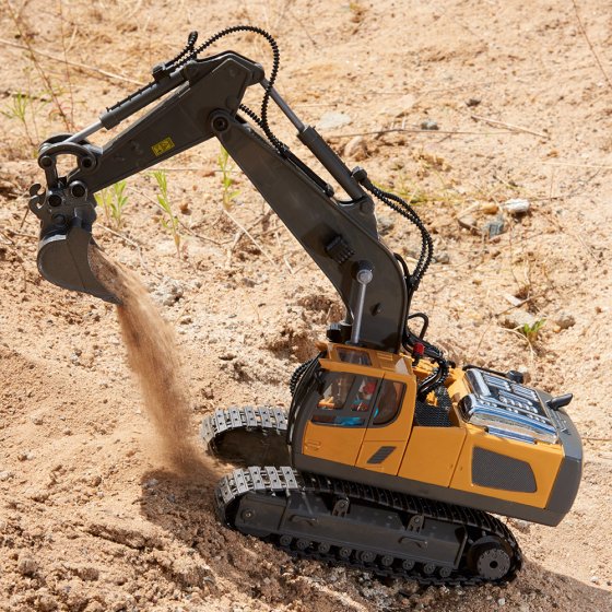 Deze radiogestuurde graafmachine (schaal 1:20) werkt als een groot exemplaar!