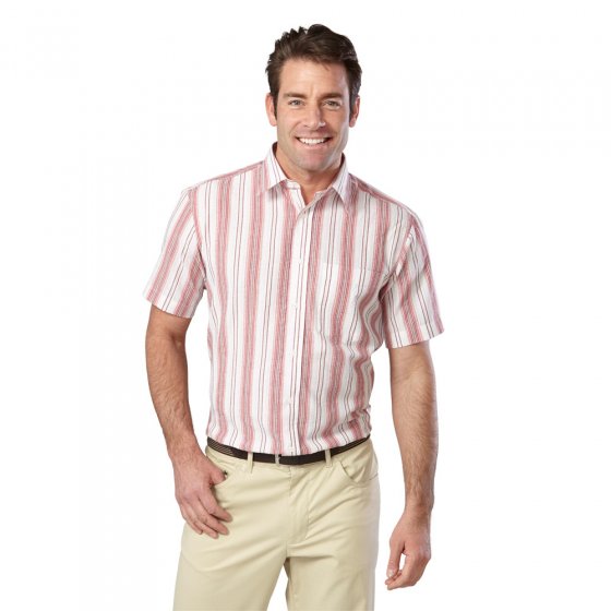 Door zijn golvende weefsel ligt de seersuckerstof niet op het lichaam, zodat een optimale luchtcirculatie mogelijk is. Heerlijk licht en huidvriendelijk in dragen, zijn deze korte mouwenhemden ook super eenvoudig schoon te maken: Gewoon wassen, laten drogen en gelijk aan trekken! Strijken is overbodig. Ideaal voor vakanties en reizen! Uitgesproken gecombineerd sterke lengte streep patroon in rood / wit en blauw / wit. SET VAN 2 SEERSUCKER STREEPOVERHEMDEN voor een super set prijs voor „koele“ rekenaars! 65% katoen, 35% polyester, wasbaar in de machine, Strijkvrij. Kent kraag, borstzak met knoop, comfort plooien in de rug, afgeronde onderzijde. Tot kraagmaat 47/48.