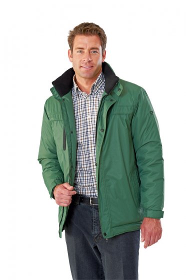 Winterdagen zijn grijs genoeg! Kies daarom voor het koude en natte seizoen, voor deze zeer duurzame SPORTIEVE WEERJACK in fris groen! De PU gecoat bovenlaag is 100% waterdicht en laat sneeuw en regen afrollen. Waterdicht getapete naden, verhinderen dat vocht indringt, met de volledig, opgerolde capuchon in de kraag beschermt u uw hoofd en nek. De gewatteerde voering in ruit vormt een echte barrière tegen wind en temperaturen onder het vriespunt. De rechte vorm is voor de bescherming tegen tocht regelbaar door een body-verstelbaar elastiek in de tailleband. Elastische manchetten met verstelbaar klittenband. Borstzak met ritssluiting, twee zijzakken, twee binnenzakken, een met rits. Verborgen ritssluiting en drukknopen als sluiting. 100% polyester. Een uiterst atterend en comfortabel jack, die met u gaat door dik en dun!