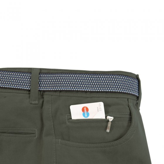 Makkelijker en comfortabeler kan bijna niet: De STRIJKVRIJE REISBROEK is kreukarm, vormvast en, dankzij stretch, ook comfortabel. Dat is mogelijk gemaakt door een "Intense finish", een in Duitsland ontwikkelde textielveredelingsmethode. De broek beweegt mee en de elastische comfortband biedt u voldoende bewegingsvrijheid als u zit. Goede pasvorm, rechte pijp. Met twee steekzakken (een met een extra zakje met rits voor kostbare spullen) en twee achterzakken met knoop. Materiaal: 98% katoen, 2% elasthaan Wassen in de machine Met deze broek is elke reis een succes.
