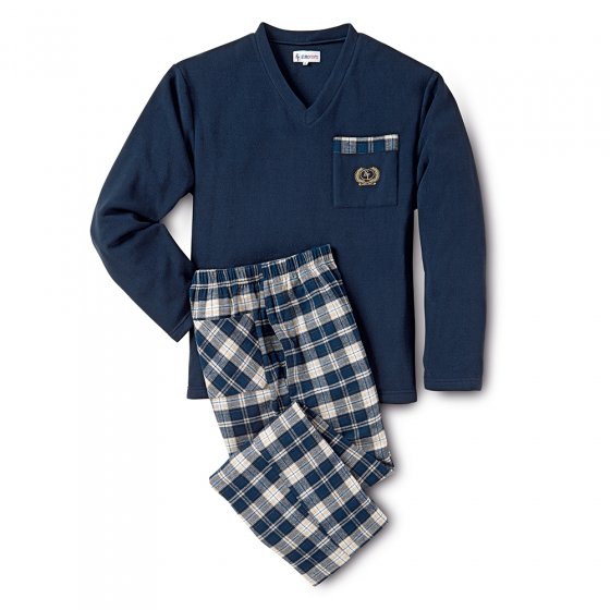 De winternachten zijn vaak zo koud dat zelfs een dik dekbed niet voldoende is. Daarom is er de THERMOPYJAMA, die onmiddellijk voor comfort zorgt dankzij fleece en flanel! Het shirt met V-hals van zachte fleece (100% polyester) houdt u warm en omarmt uw lichaam. Het heeft een geborduurde borstzak met contrasterende bies en zijsplitten. De perfecte aanvulling is de flanellen broek van 100% katoen. Deze heeft een elastische tailleband met verstelband, steekzakken en achterzak. Rick Armand-pyjama's zijn volledig wasbaar en zijn ook geweldig als huispakken!