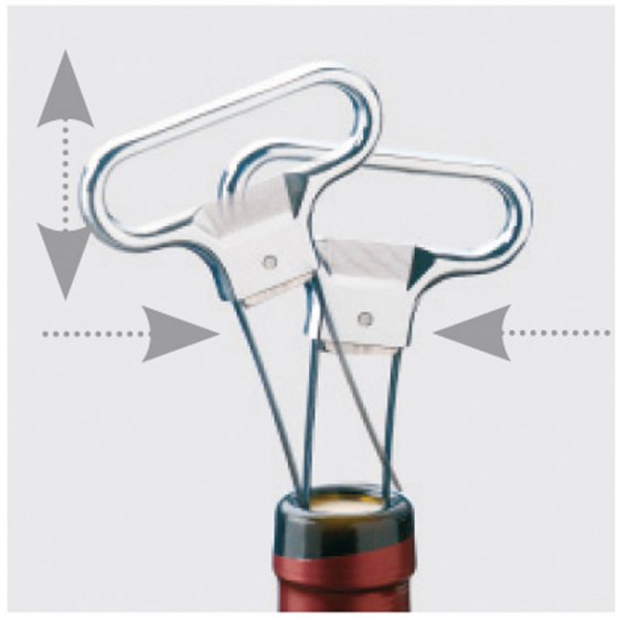 De kurk van oudere wijnflessen eruit halen is een hachelijkklusje. En dan ook nog de kurk heel laten om de fles weer te kunnen sluiten is met een gewone kurkentrekker bijna onmogelijk! Met de VEERTONGEN-KURKENTREKKER echter gaat dat wel! Eerst moet u de twee metalen veertongen – de ene wat langer dan de andere – tussen de kurk en de flessenhals plaatsen en met een wippende beweging in de flessenhals duwen; als het handvat op de kurk zit, kunt u met één draaiende beweging de kurk uit de fles halen. Wilt u de fles weer sluiten, dan gaat u omgekeerd te werk: De kurk tussen de veertongen plaatsen, in de flessenhals draaien en dan de tongen er ’uitgewippen’. Werkt perfect voor oudere wat kruimige kurken, waar de andere kurkentrekkers meestal geen grip op krijgen en de kurk kapot trekken. Het veertongen-kurkentrekker-principe stamt af van het 19e eeuwse Duitse patent en is nog steeds een elementair onderdeel in de betere restaurants in het ‘wijnland’ Frankrijk. Afm.: ca. 6,5 x 11 cm. Geniet met plezier – zonder kurk – van uw betere en vaak oudere wijn!