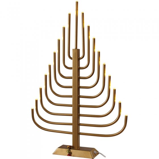 Deze prachtige VENSTERLICHTBOOM MET 19 LEDS van perfect gevormd metaal ziet er niet alleen feestelijk uit, maar is ook opvallend dankzij zijn grootte van ongeveer een halve meter. Een echte blikvanger: tijdloos modern dankzij de klassieke lijnen, maar toch met een echte kerstuitstraling! Afmetingen: ca. 52 x 32 cm, 230 V. Kleur: matgoud. Met extra duurzame leds (30.000 uren). Voor een stralende kerst!