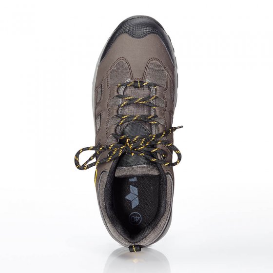 De WANDELSCHOENEN MET KLIMAATMEMBRAAN zijn zacht en comfortabel, waar u ook loopt. Ook vochtige, oververhitte of vermoeide voeten zijn geen probleem meer. De Comfortex-klimaatmembraan maakt de veterschoenen aan de buitenkant waterafstotend; hij laat wel lucht bij de voet en reguleert de temperatuur in de schoen. De rand, de tong en het verwisselbare voetbed zijn zacht verdikt, wat het schokken bij het hardlopen tot een minimum beperkt en wrijving voorkomt. De antislipzool van kunststof biedt stevige steun op de grond. De schoen heeft een voering van textiel en een aantrekhulp. De materialenmix van nylon en kunststof ziet er stoer uit, is functioneel en is zeer gemakkelijk in onderhoud.