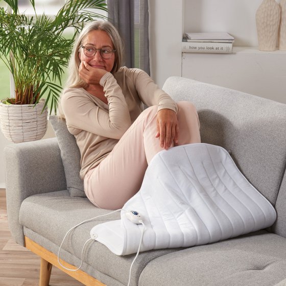 De onderste ledematen zijn meestal gevoeliger voor kou dan het bovenlichaam. Nooit meer koude voeten: met deze compacte elektrische deken kunt u het voeteneinde van het bed verwarmen of zelfs de elektrische deken in een fauteuil of op de bank gebruiken. De 80 x 60 cm en ongeveer 1 cm dikke elektrische deken is beveiligd tegen oververhitting en schakelt automatisch uit na 2 uur. De warmteafgifte kan in 3 standen worden geregeld. Vermogen: ca. 50 W. Werking via 230 V.