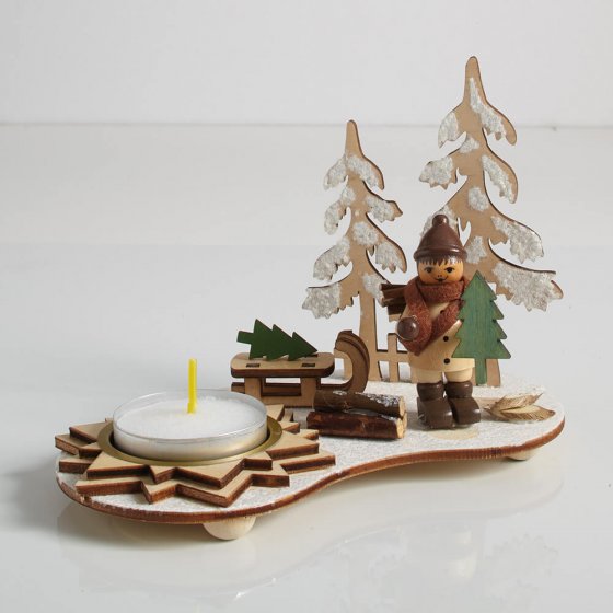 Vaak zijn het de kleine dingen, die de kersttijd zo mooi en gezellig maken. De WAXINELICHTHOUDER 'SLEDETOCHT' is er een van! Gemaakt van hout, gedetailleerd verwerkt en liefdevol met de hand geverfd, een winterlandschap met fonkelende, besneeuwde bomen en een jongetje met slee. Veilige houder van messingkleurig metaal voor het waxinelichtje. Afm. (l x b x h): ca. 8,5 x 15 x 11 cm. Waxinelichtjes met lange brandtijd afzonderlijk te bestellen. Met dit kleine kunstwerk doet u niet alleen uzelf een plezier: de waxinelichthouder is een ideaal cadeau voor de adventstijd!