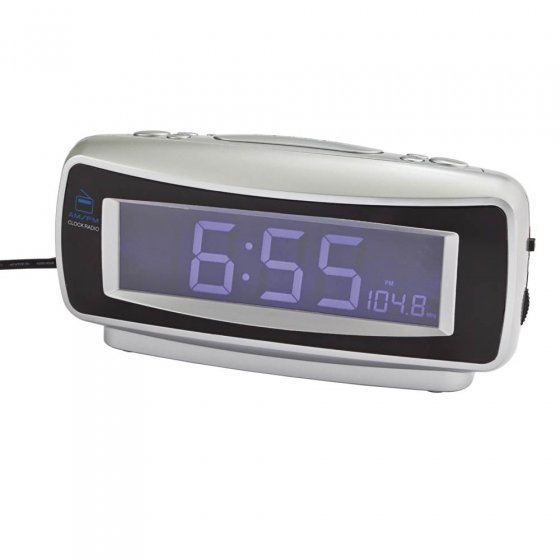 met snooze-functie. Verbruik: 1 W voeding met een noodvoorraad op 9V batterij (wordt apart verkocht). Slagvaste kunststof in zwart / Zilver, Afmetingen: 22 x 11 x 9 cm. Een innovatie, die bewezen prestaties en een slimme uitstraling combineert!