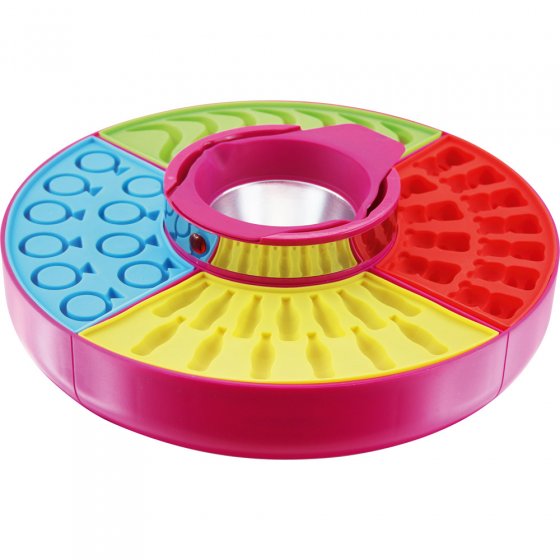 Grote en kleine lekkerbekken opgelet: met deze WINEGUM-MAKER kunt u genieten van uw eigen gumbeertjes. Of heeft u toch liever gumringen, wormpjes of colaflesjes? Dankzij de vier meegeleverde siliconenvormen is kiezen niet meer nodig, maar maakt u ze gewoon allemaal tegelijkertijd! Heel eenvoudig: verwarm de ingrediënten in een pan met gelatine, leg ijsblokjes onder de vormpjes en giet de gelatinemix erin. Na enige tijd kunt u de winegums eruithalen en zijn ze klaar. Gebruik een van de vijf meegeleverde recepten of laat uw creativiteit de vrije loop. Werkt op 230 V. Afm. (Ø/h): ca. 31/8 cm. Geniet van heerlijke winegums in de smaak waar u van houdt!